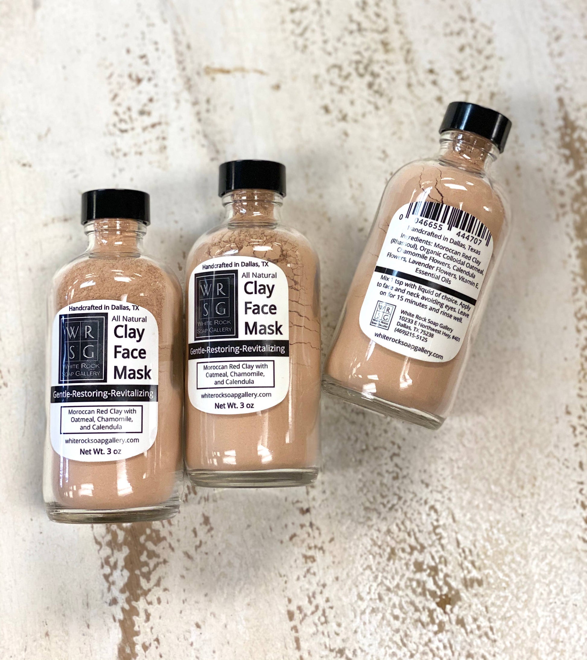 Ingredients: Moroccan Red Clay (Rhassoul), Organic Colloidal Oatmeal, Organic Chamomile Flowers, Organic Calendula Flowers, Organic Lavender Flowers, Vitamin E, Essential Oil Blend. Net Weight: 3 oz.
